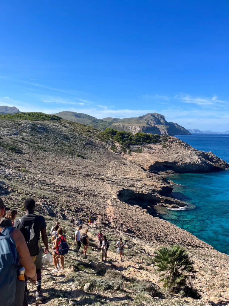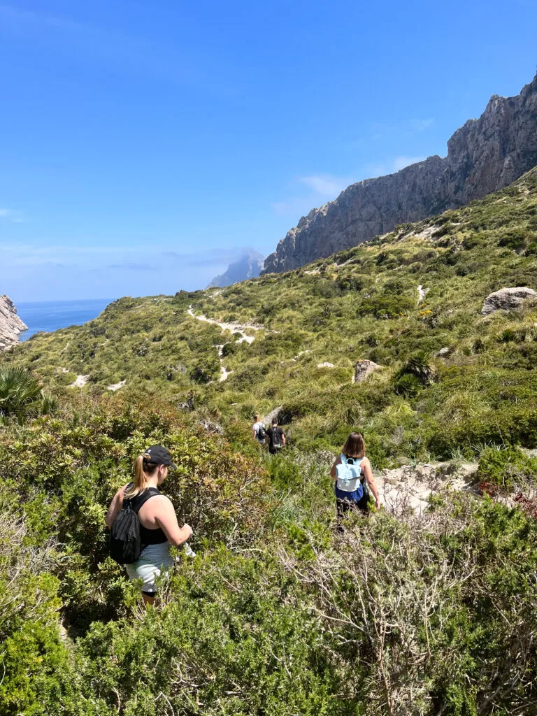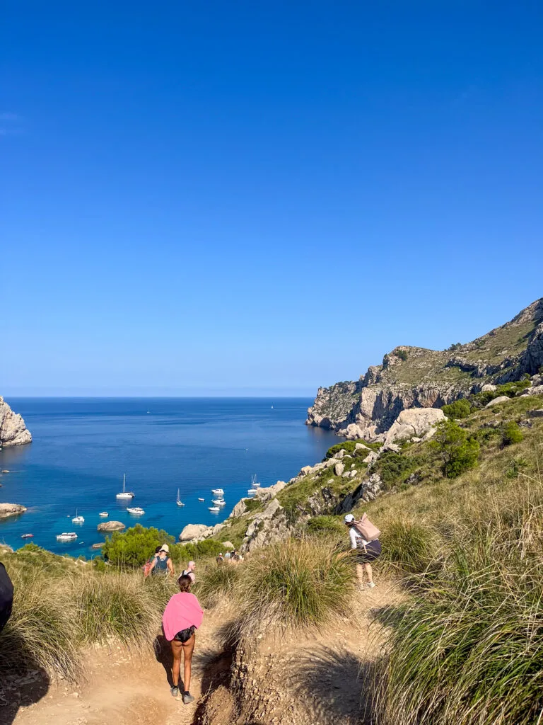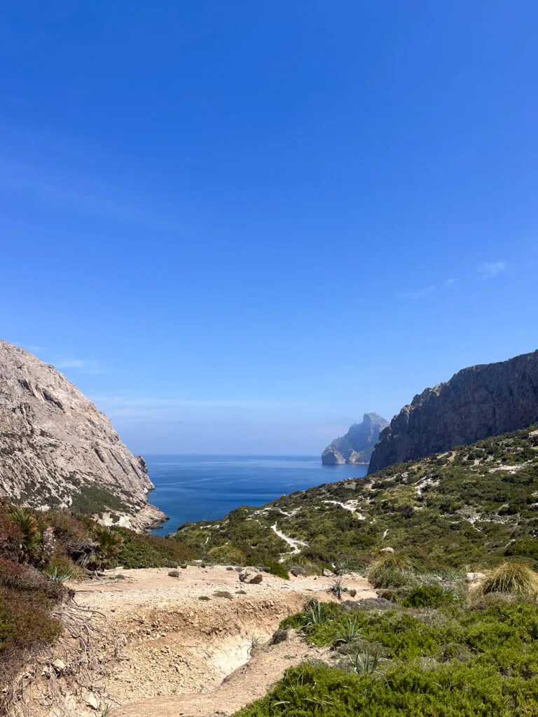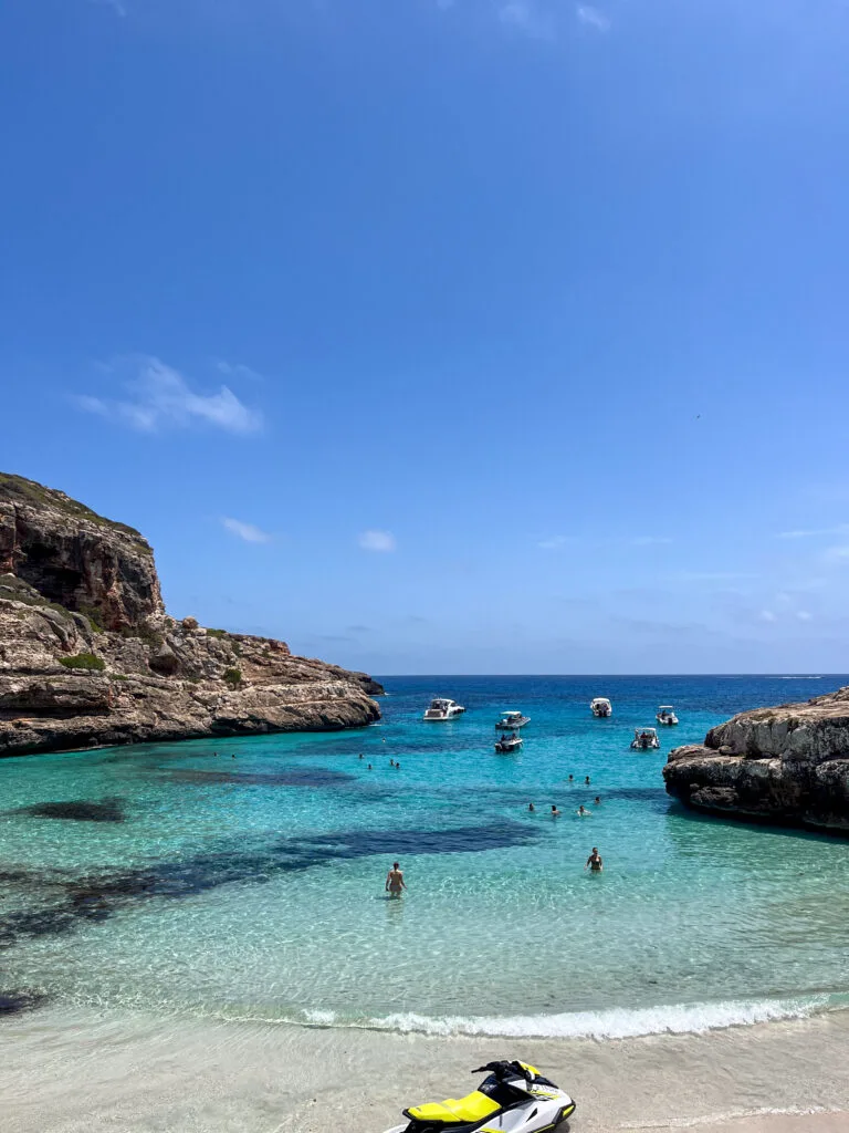 This quiet pebble beach is tucked away at the edge of the Bóquer Valley (Vall de Bóquer) in the Serra de Tramuntana mountains. It’s about a mile and a half hike. I love it because of how green it is, at least for Mallorca. You’re walking through bits of the Serra de Tramuntana and lots of low-lying shrubs and grasses. It’s not a coastal hike, more like a gentle mountain hike with a gorgeous cove at the end. The cove doesn’t have soft sand, but there are rocks you can sun on. It’s great for snorkelling. Unfortunately, I was unable to swim when I went because of the large amount of jellyfish that day, a gamble no matter which beach you go to. Nevertheless, the views and vibes were amazing all the same. A fun game to play with yourself, your friends, or your family is “Find the Goats,” because there can be a lot of them and sometimes you just hear them bleating but don’t see them. Also, protect your lunch because they can be bold.